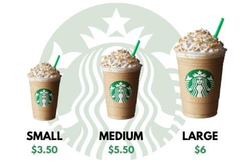 Por ejemplo, si vas a una cafetería y tienes dos opciones: un café pequeño por 3,5$ y un café grande por 6$, algunas personas elegirán la opción más económica.